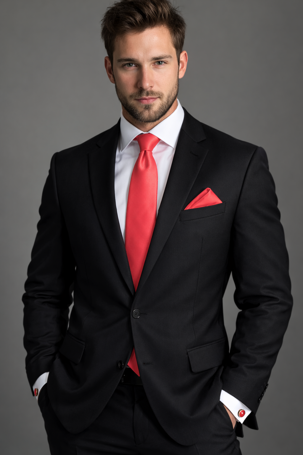 Coral Pink Satin Tie Set – Tie, Pocket Square & Cufflinks